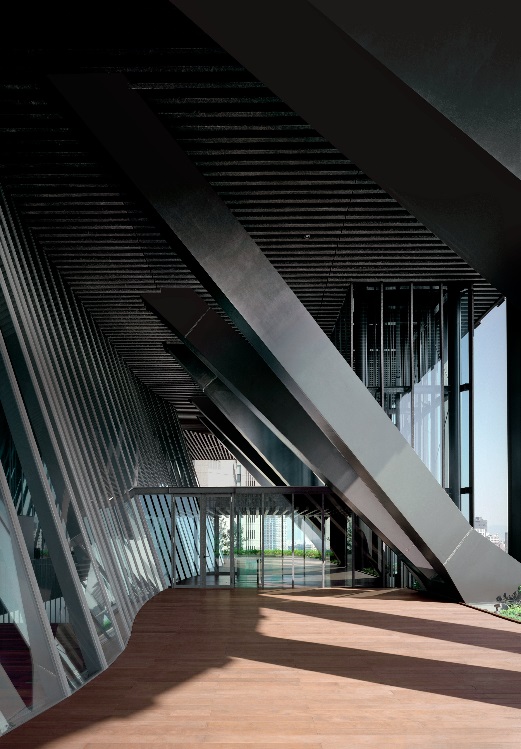 巨大トラスは、高層階重量を建物外周に集約することを可能にして免震構造の性能を最大限に高め、中間層免震は、高層階に作用する地震力を小さく抑えて巨大トラスの地震時安全性を高めるなど、2つの核は相互に影響して建物の構造性能を高めることにも寄与している。