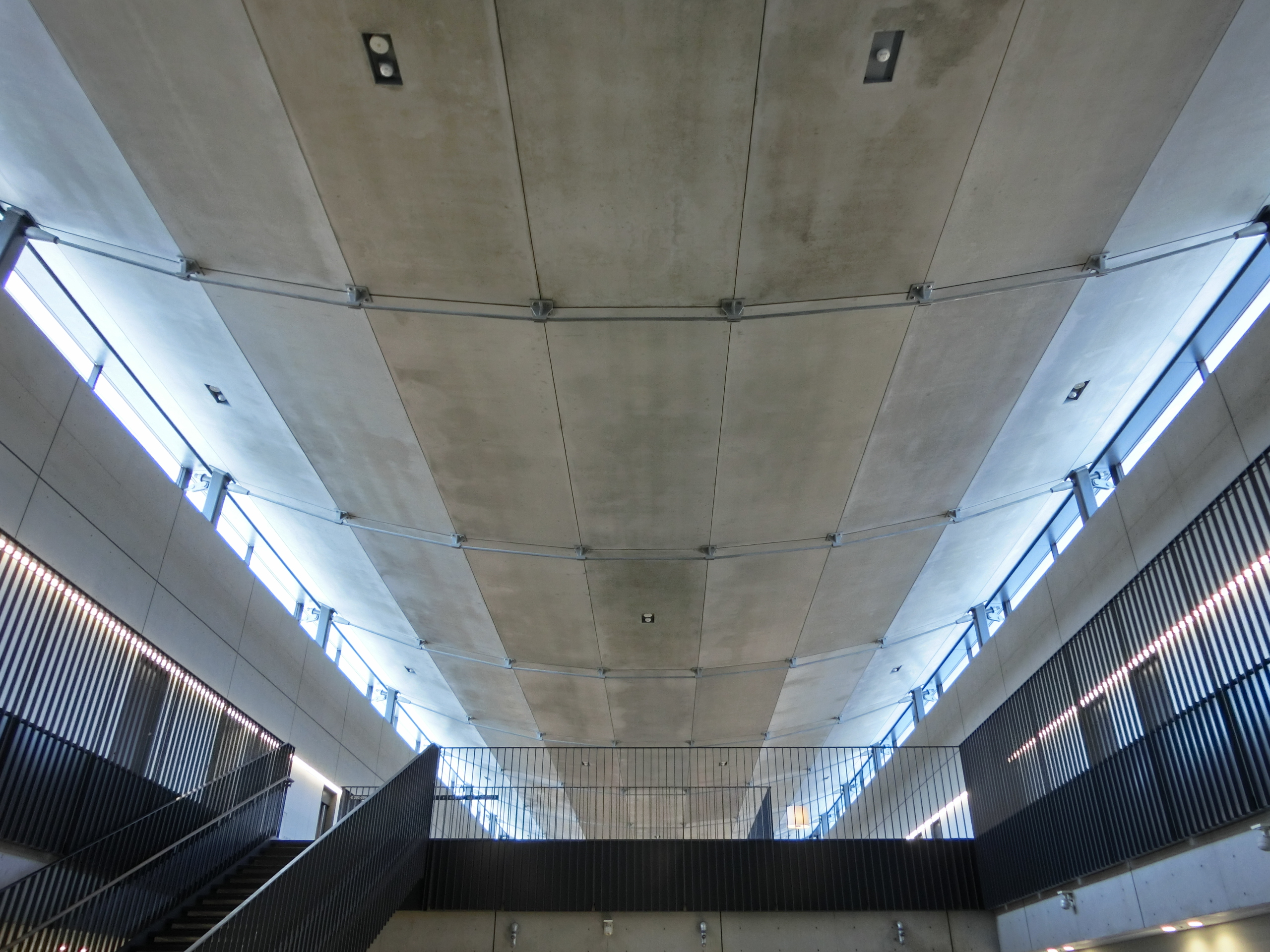 構造ケーブルとPCaスラブを現しにして組み合わせる新たな 建築表現に際し、ケーブルの安定性やアトリウム空間に対する安全性などを慎重に配慮して実現した下凸形状曲面屋根は、研修生が行き交うアトリウムに彼らが業務で扱うケーブルによる内観を構築して、技術者に成長していく想い出の場を与えている。